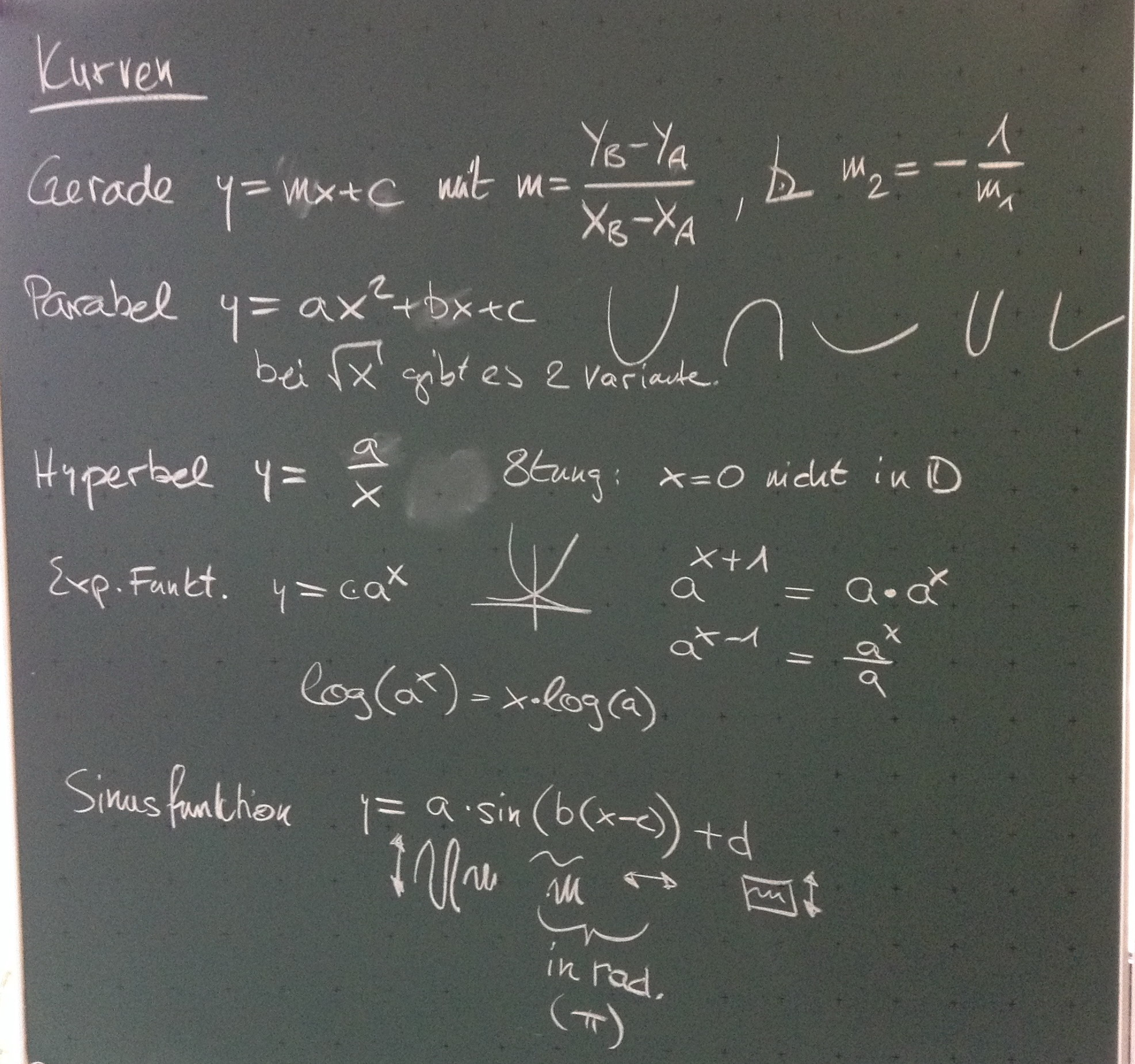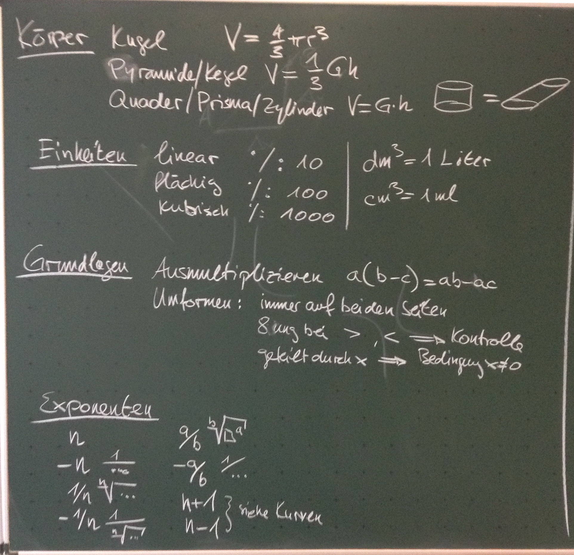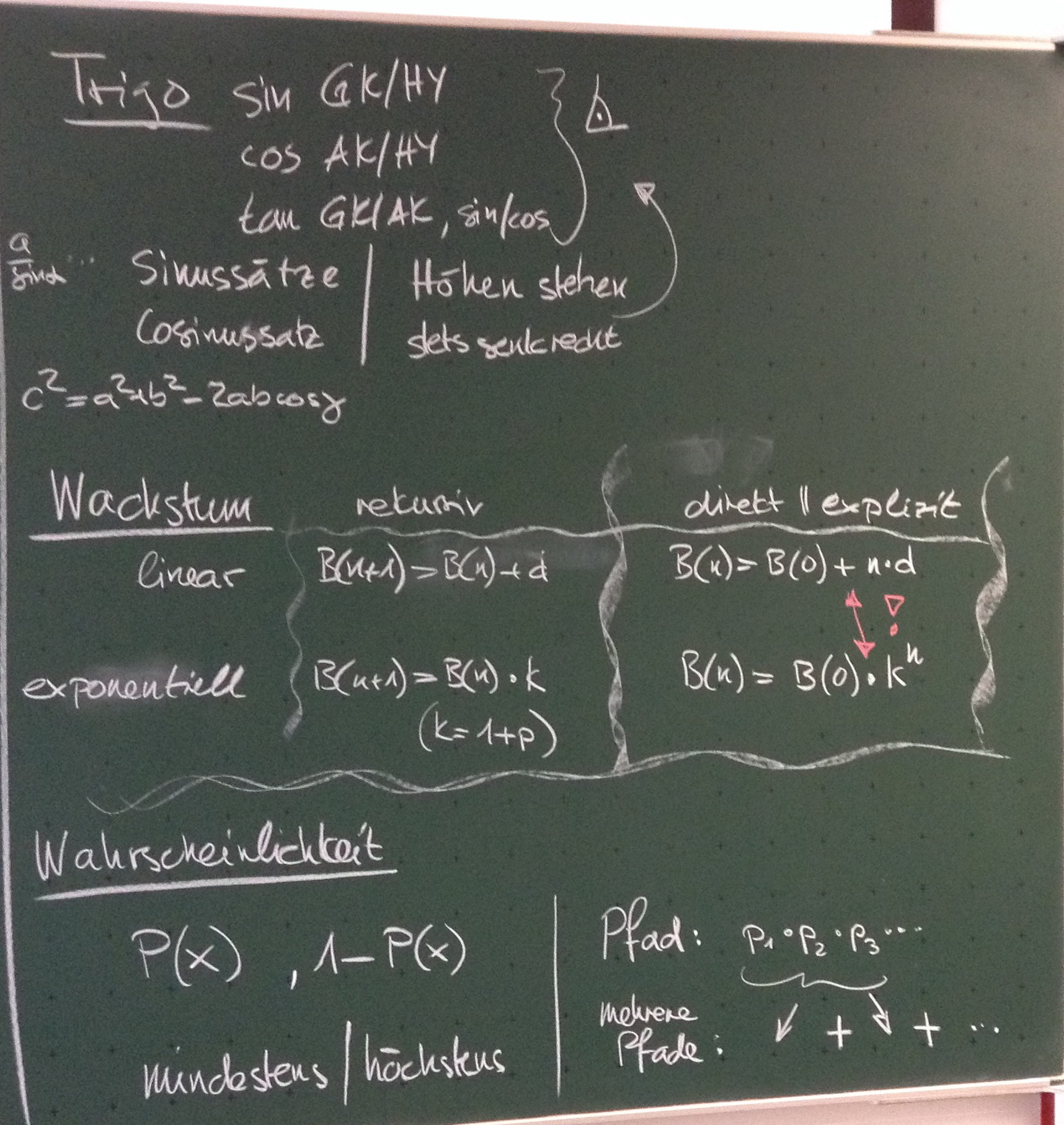 Tafelbilder der Zusammenfassung für die ZK